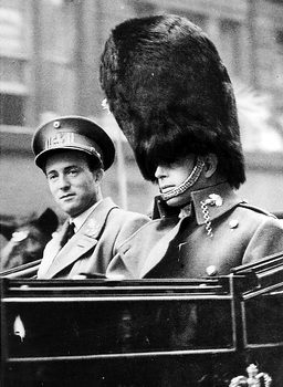 Roi Léopold III à Londres. Le Roi, accompagné du Duc de Kent, se rend en carrosse au Guild Hall. Le 12 novembre 1937. |